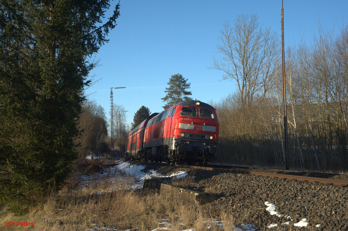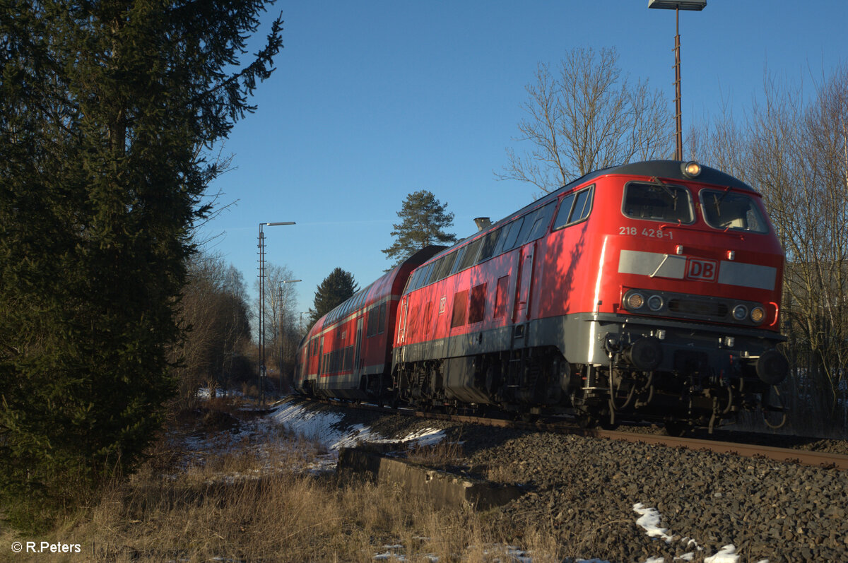218 428 mit dem RE2 RE4863 Hof - München in Röslau. 29.12.24