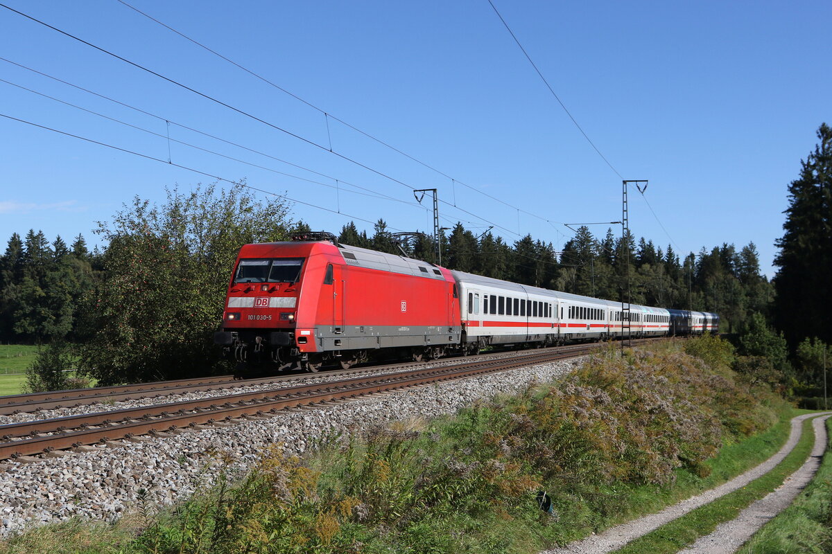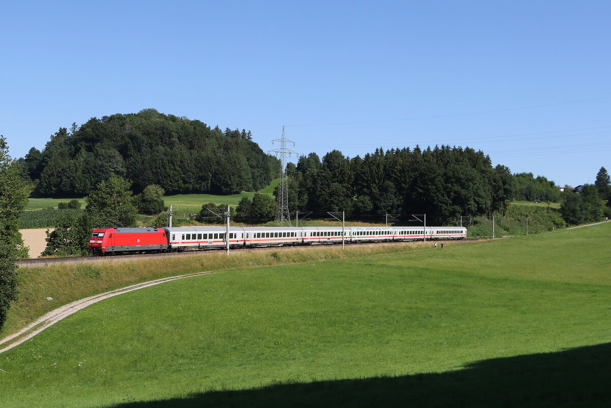 101 001-6 mit dem "IC Königssee" am 12. April 2015 kurz vor Bernau am Chiemsee.