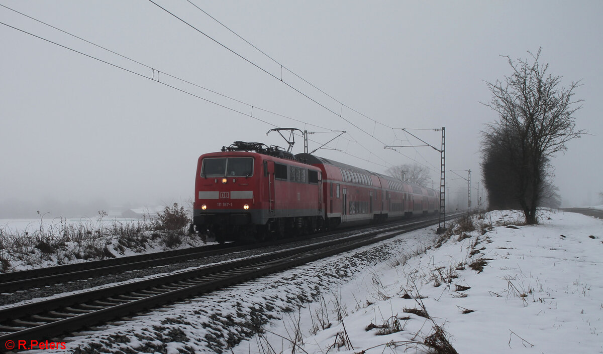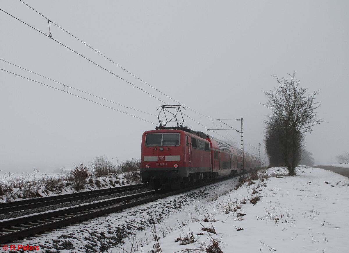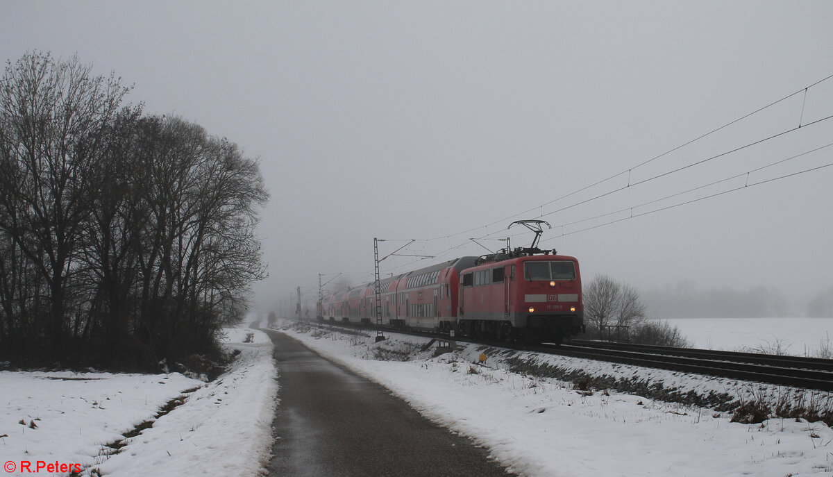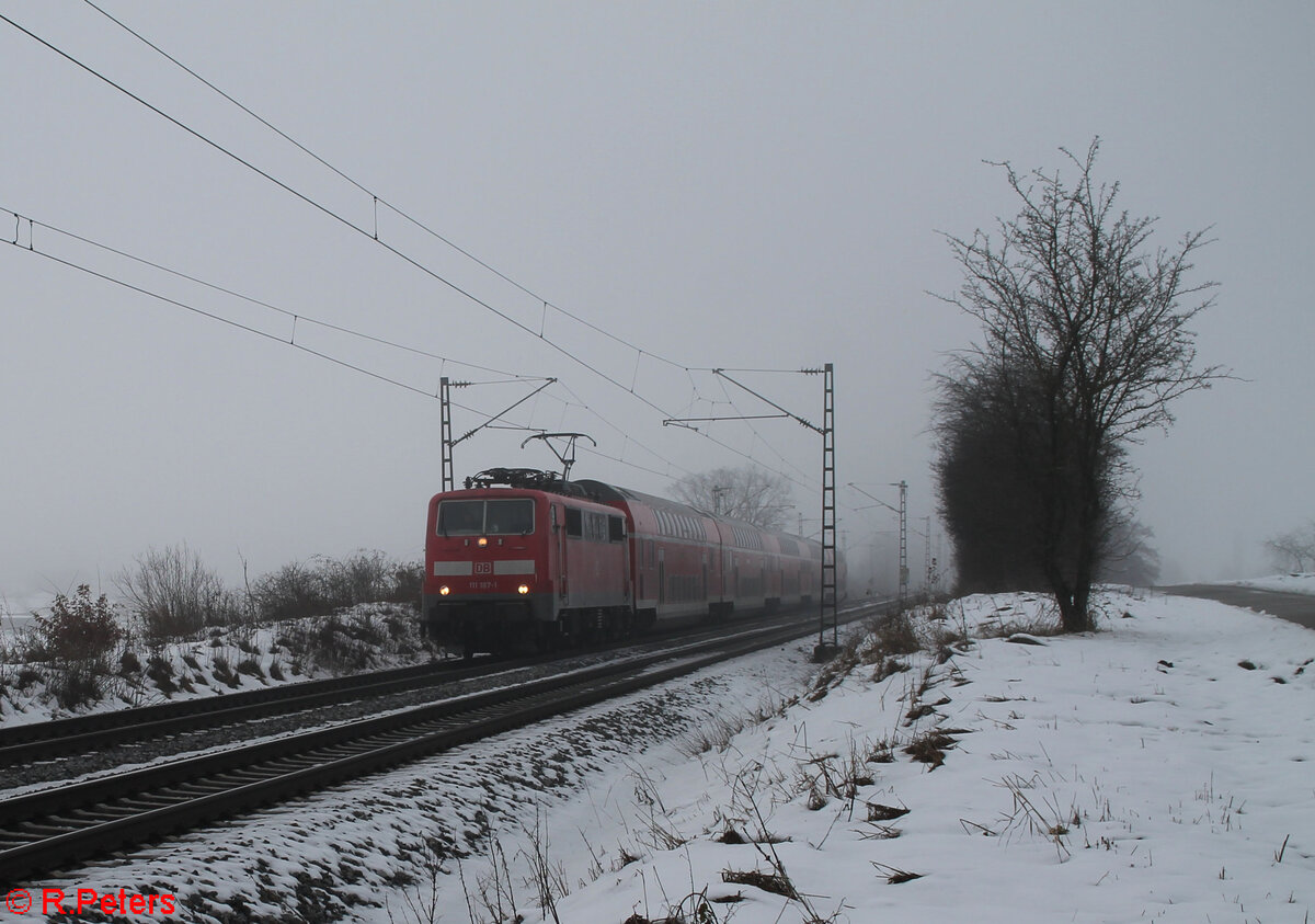 111 148-3 zieht den RE 4244 Nürnberg HBF mit etwas verspätung durch Obertraubling. 09.01.10