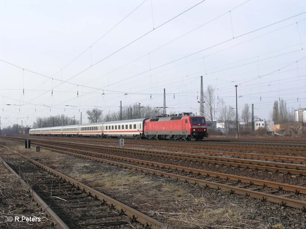 120 112-8 steht in Leipzig HBF mit den IC 2038 Oldenburg (Oldb) bereit. 21.12.09