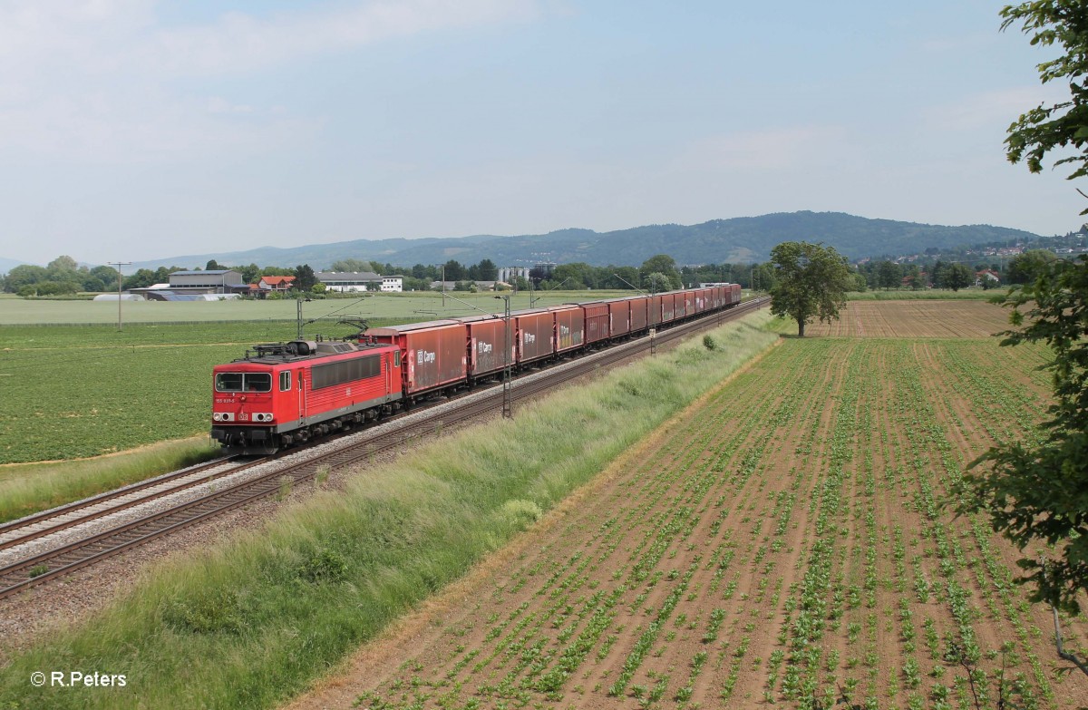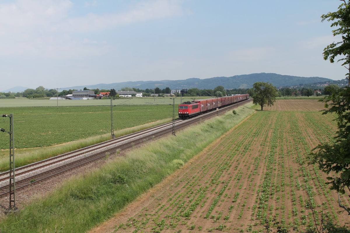 155 037-5 zieht bei Großsachsen-Heddesheim ein Opelzug gen Süden. 28.05.15