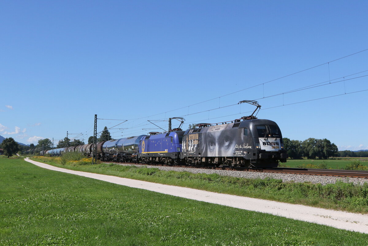 182 530 war am 10. April 2017 bei Hilperting mit einem Autozug in Richtung München unterwegs.