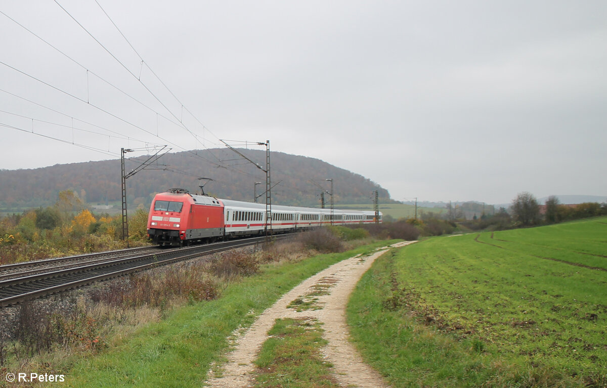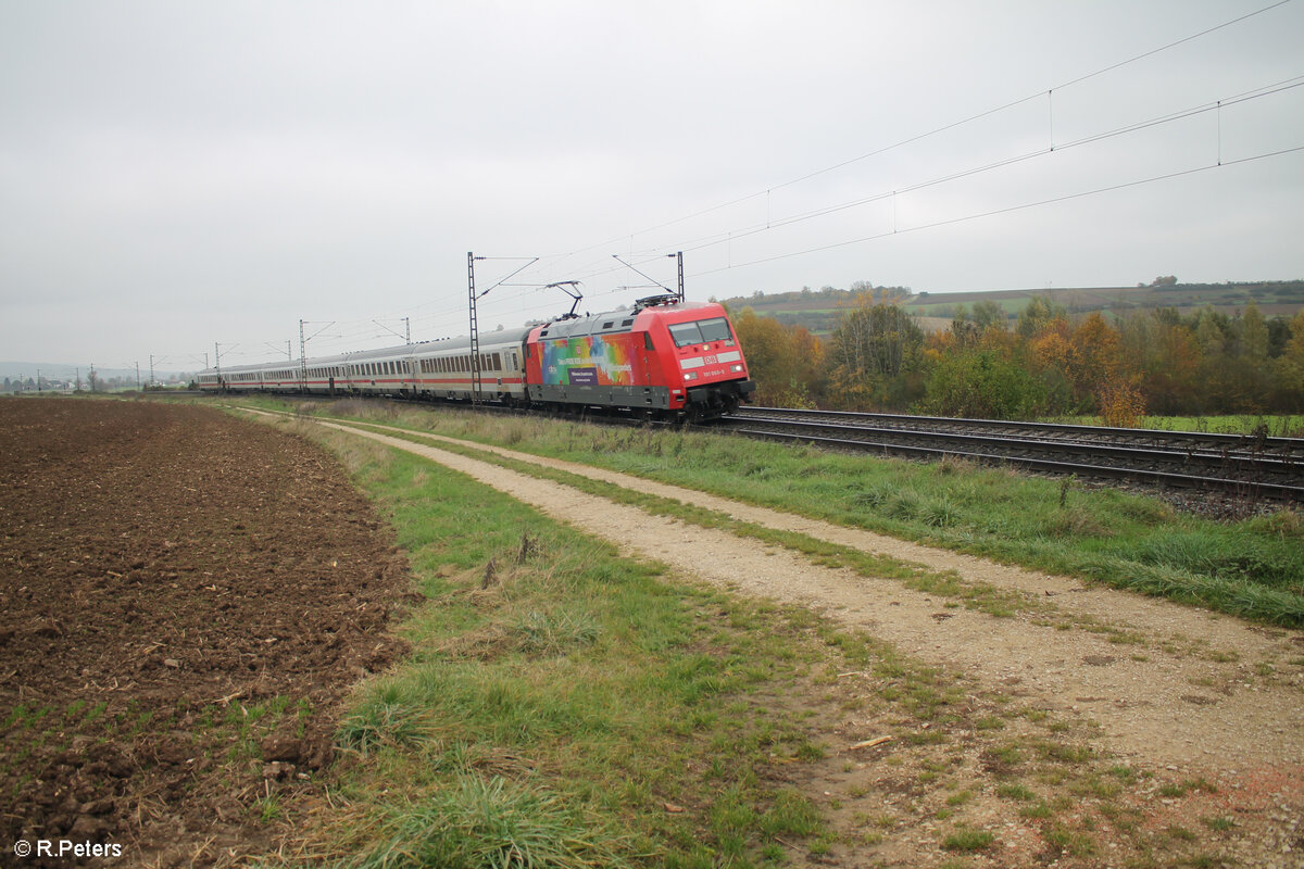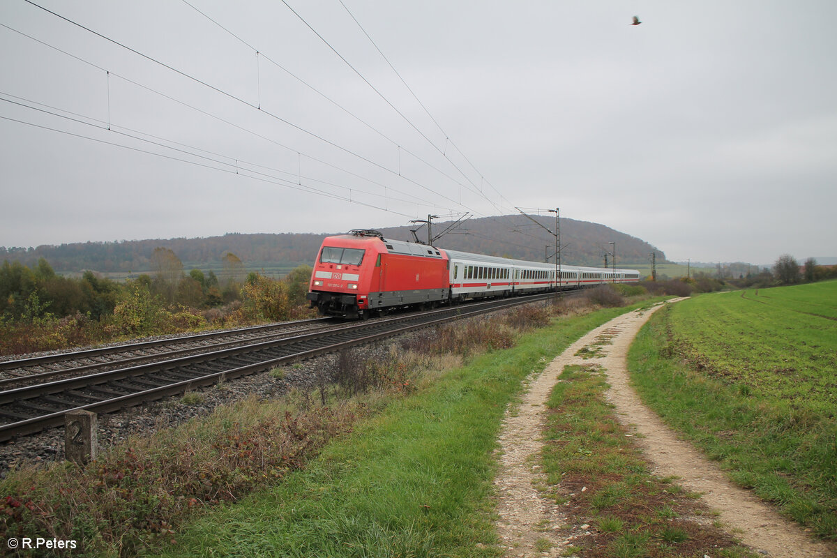 101 066-9  Einziganders  erreicht Treuchtlingen mit dem IC2083/85 Hamburg Altona - Berchetesgarden/Obersdorf. 01.11.24