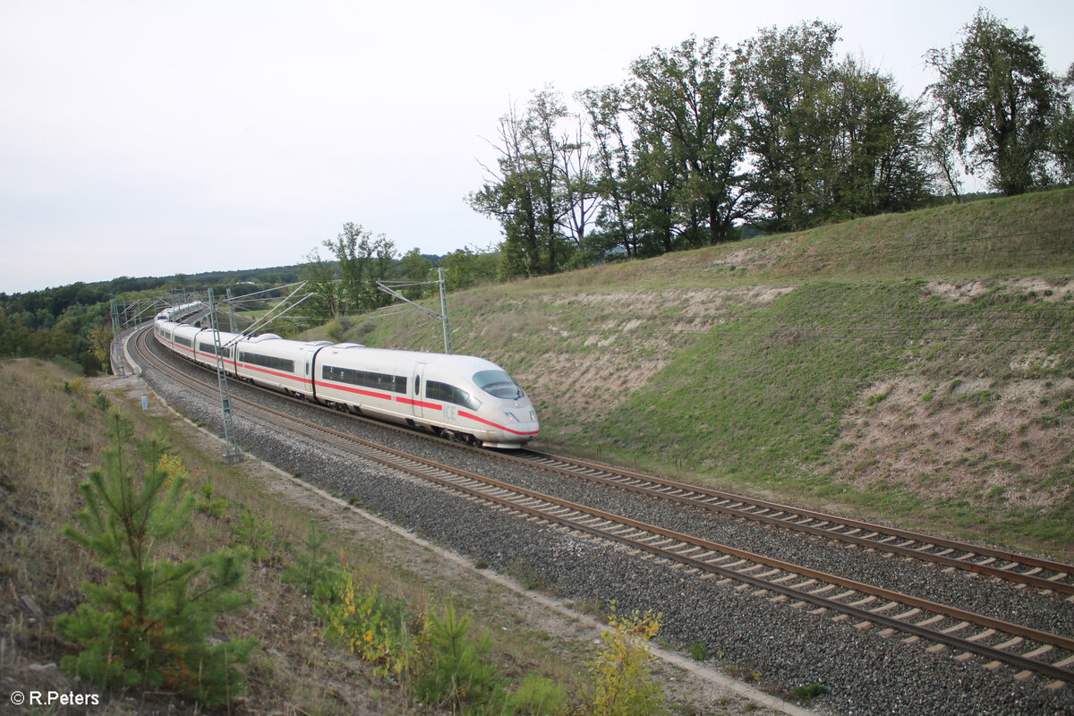 411 003-7 "Paderborn" + 411 073-0 "Halle/Saale" als ICE 26 Wien - Dortmund bei Emskirchen. 29.09.24