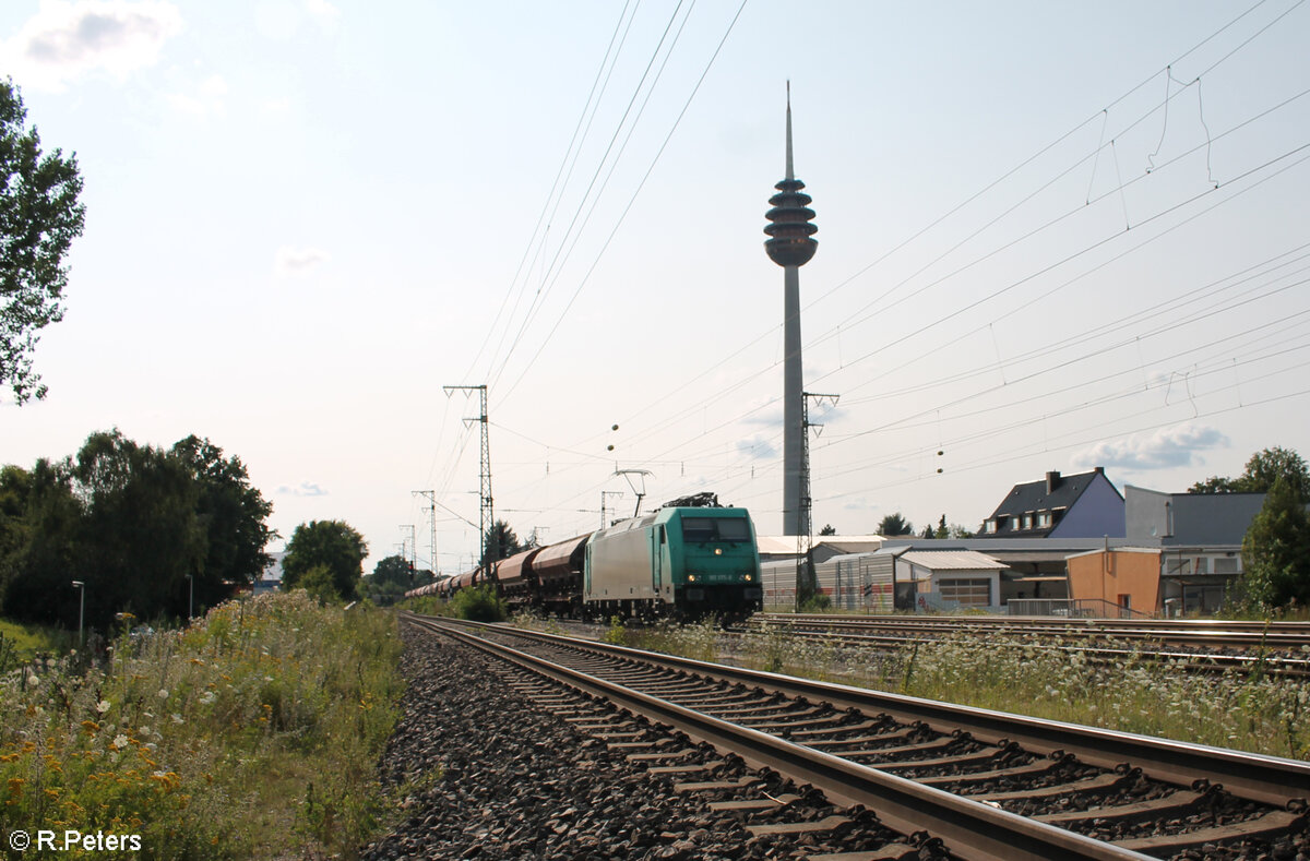 185 575-8 zieht mit einem Schotterzug durch Nürnberg Hohe Marter. 24.07.24