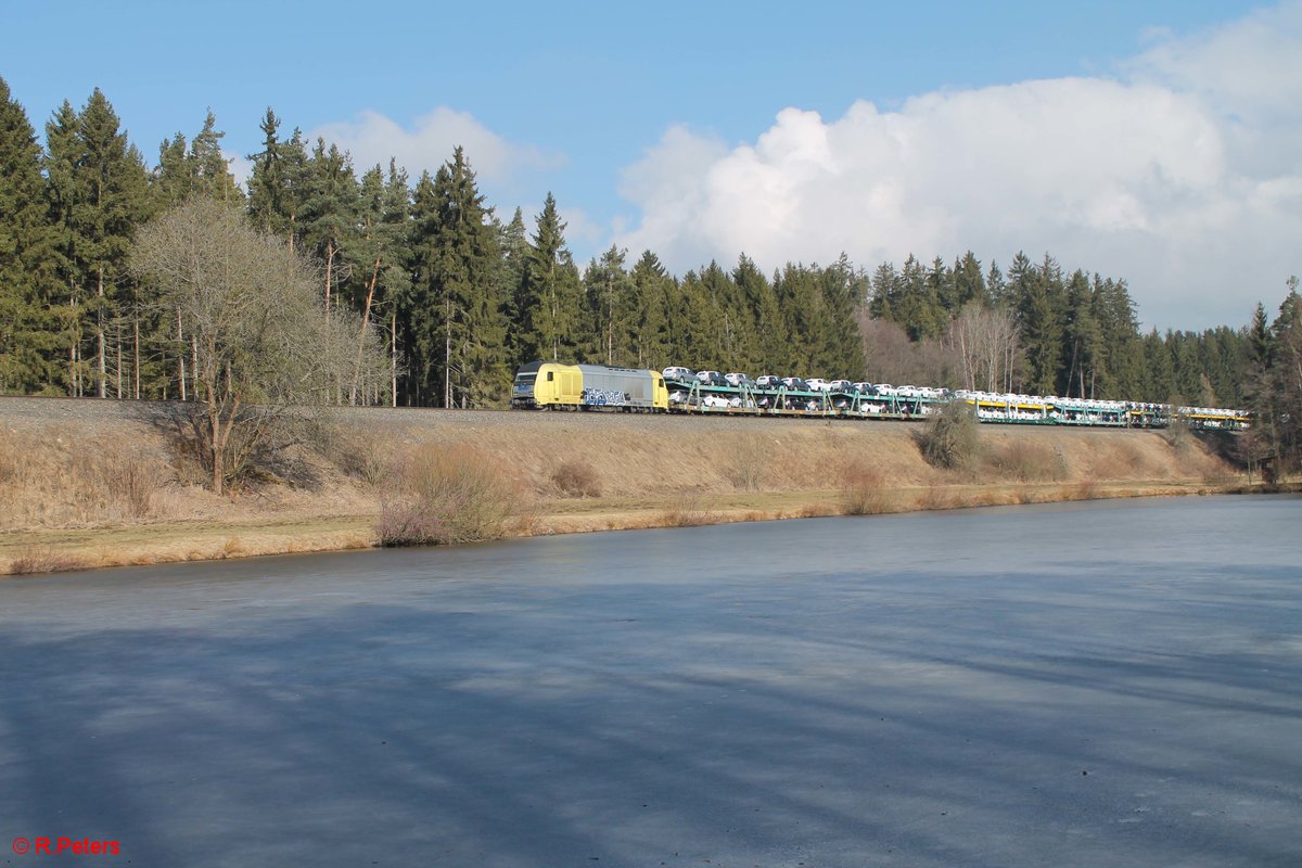 ES64 F4 093 zieht ein Wechselpritschenzug bei Retzbach-Zellingen gen Norden. 13.10.18