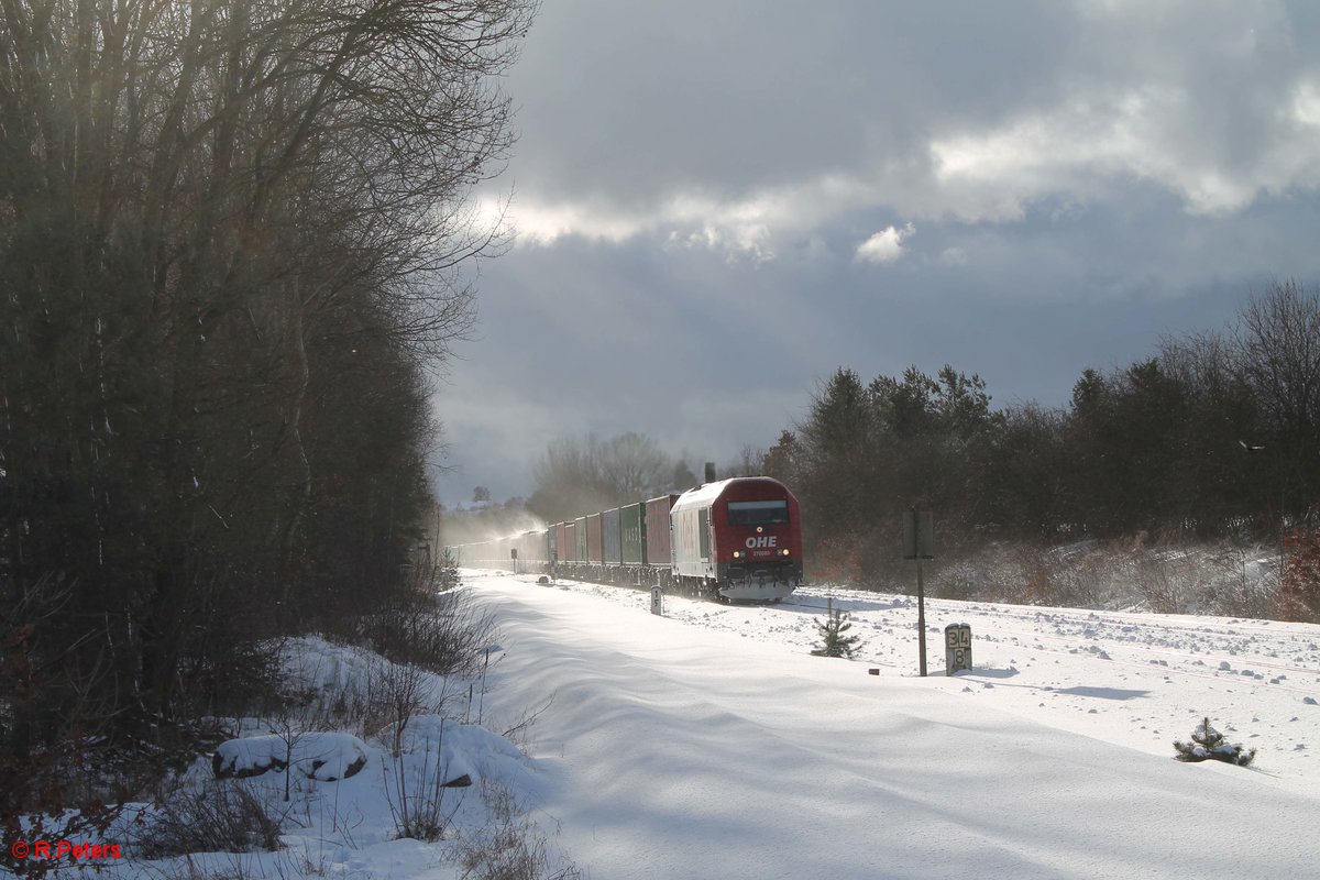 270080 alias 223 101 zieht bei Schönfeld den Wiesau Containerzug nach Hof. 14.01.17