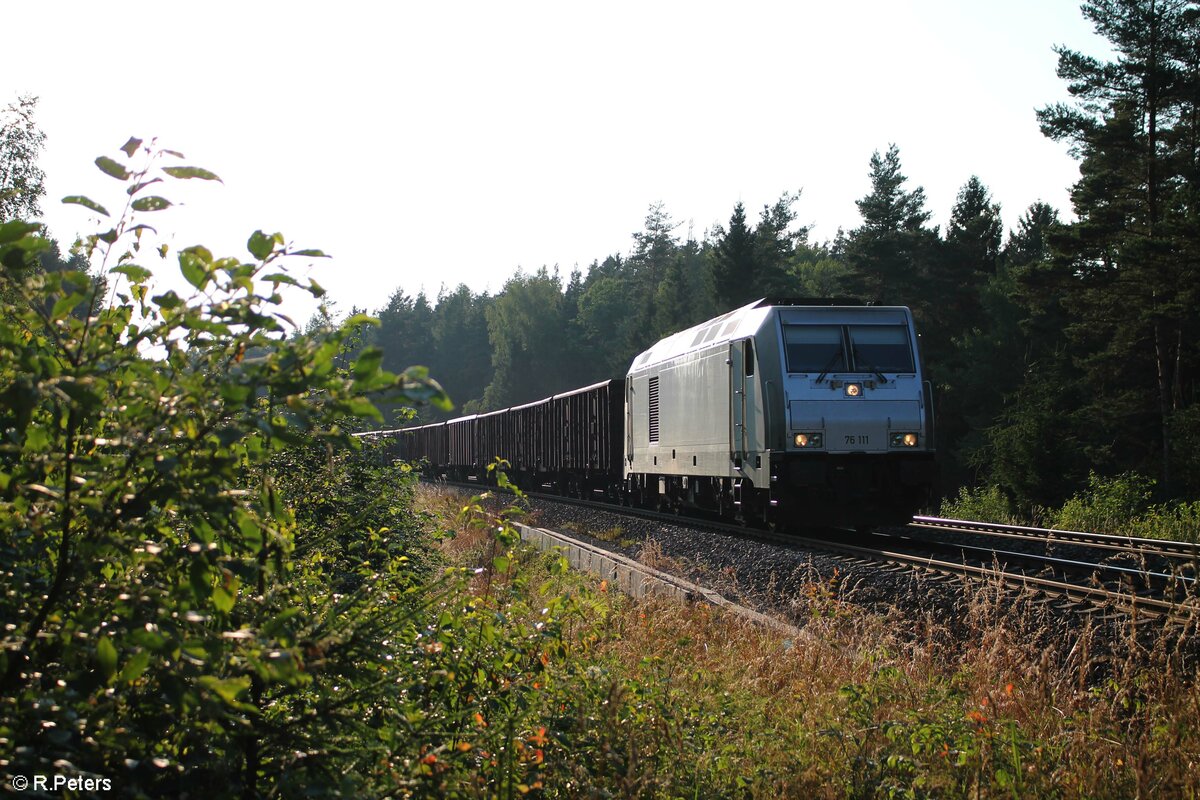76 111 mit dem Könitzer Schrottzug nach Cheb bei Unterthölau. 23.07.21