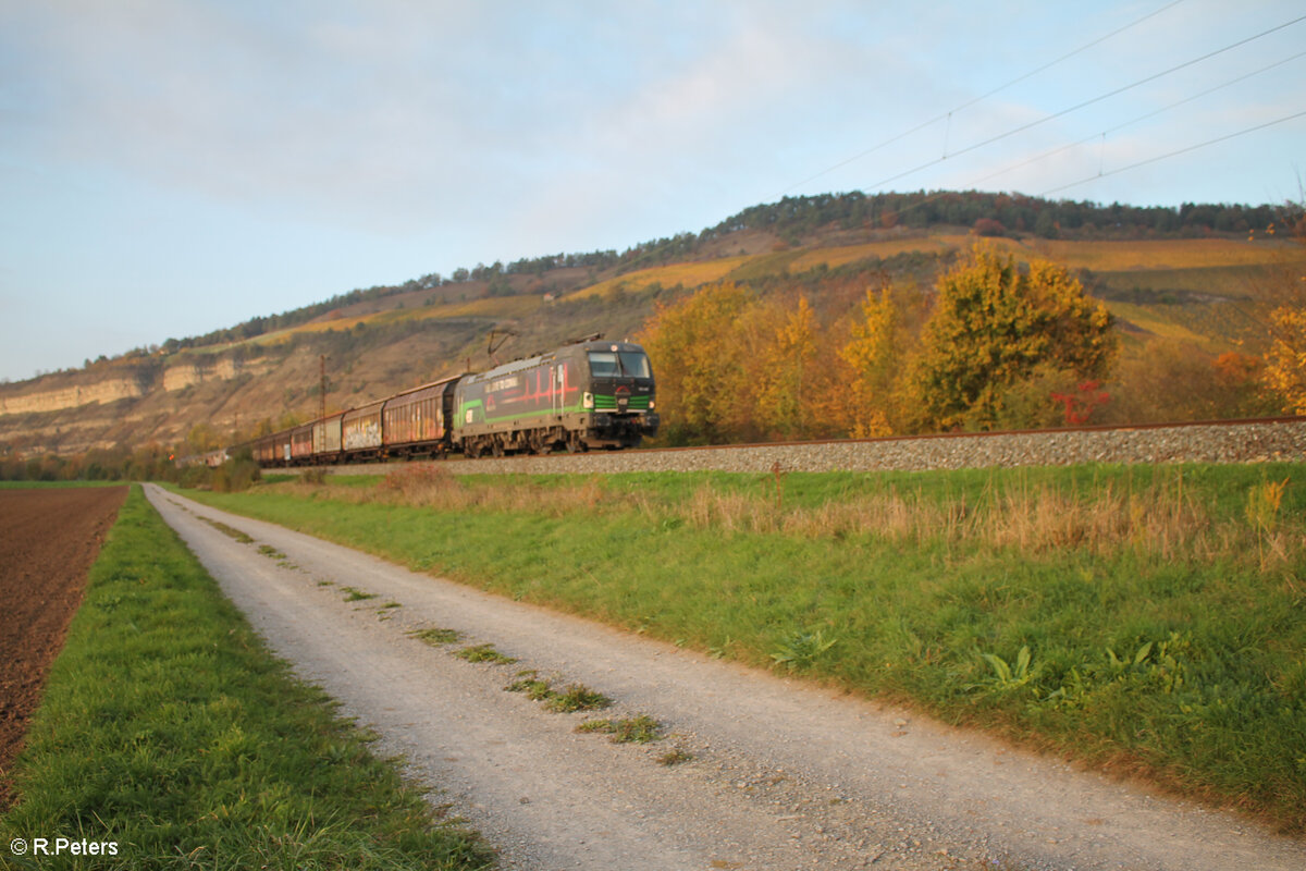 193 265  We Love to Connect  zieht bei Thüngersheim einen H-Wagen Zug in Richtung Süden. 27.10.24