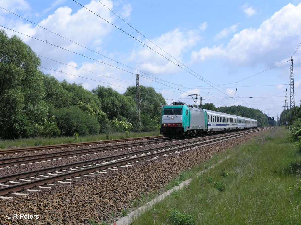 E186 241-6 zieht bei Briesen(Mark) den EC46 nach Berlin. 02.06.09