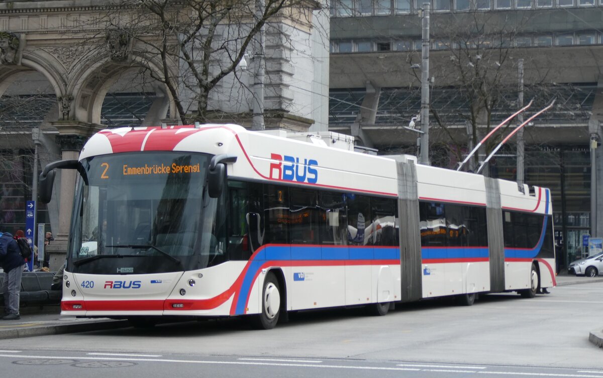 (148'895) - VBL Luzern - Nr. 202 - Hess/Hess Gelenktrolleybus am 16. Februar 2014 beim Bahnhof Luzern