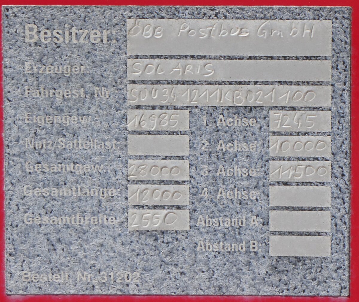 (257'190) - Typenschild - VBL Luzern Nr. 231 - am 19. November 2023 in Thun