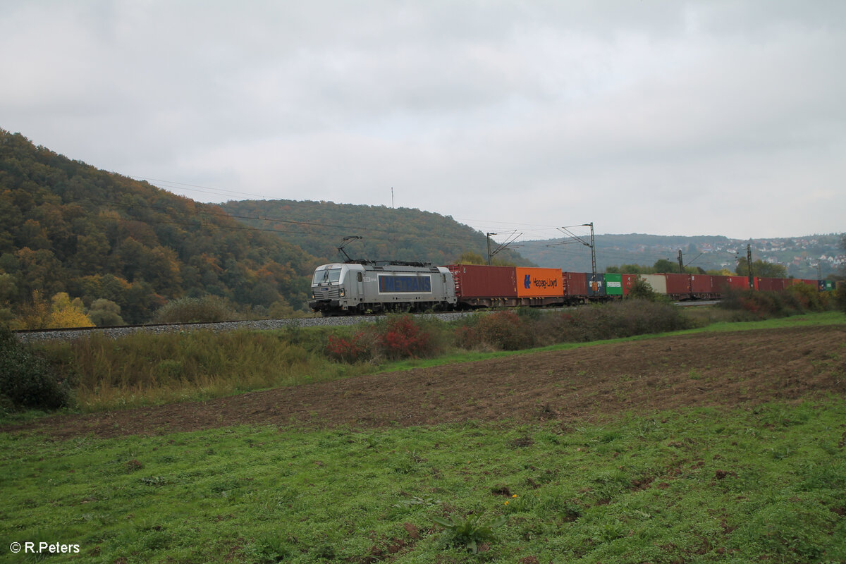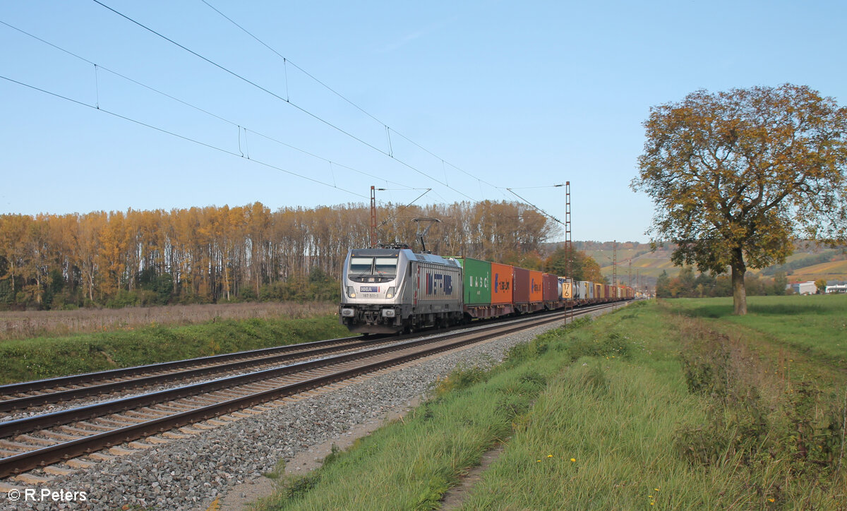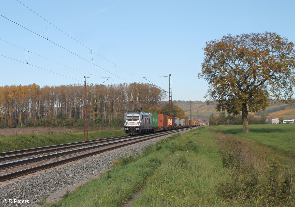 187 511-1 zieht mit einem Containerzug bei retzbach-Zellingen in Richtung Süden. 21.10.24