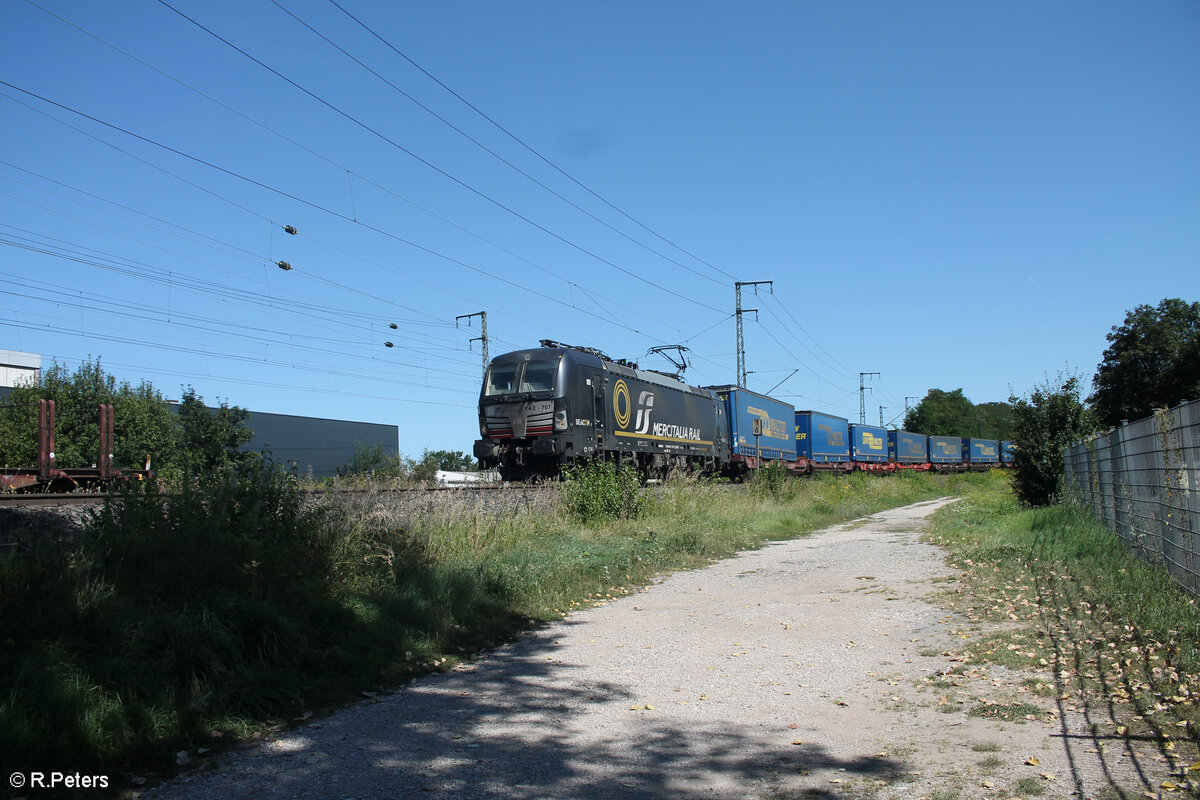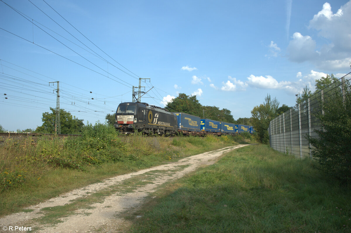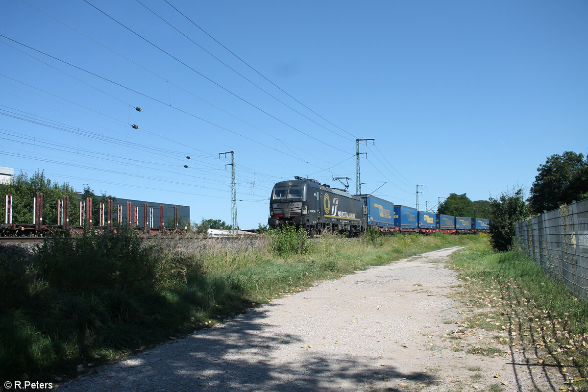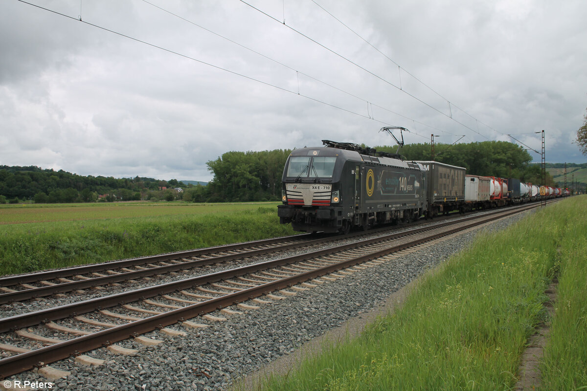 X4E 702 zieht mit einem Wechselpritschenzug durch die Kurve bei Treuchtlingen. 01.11.24