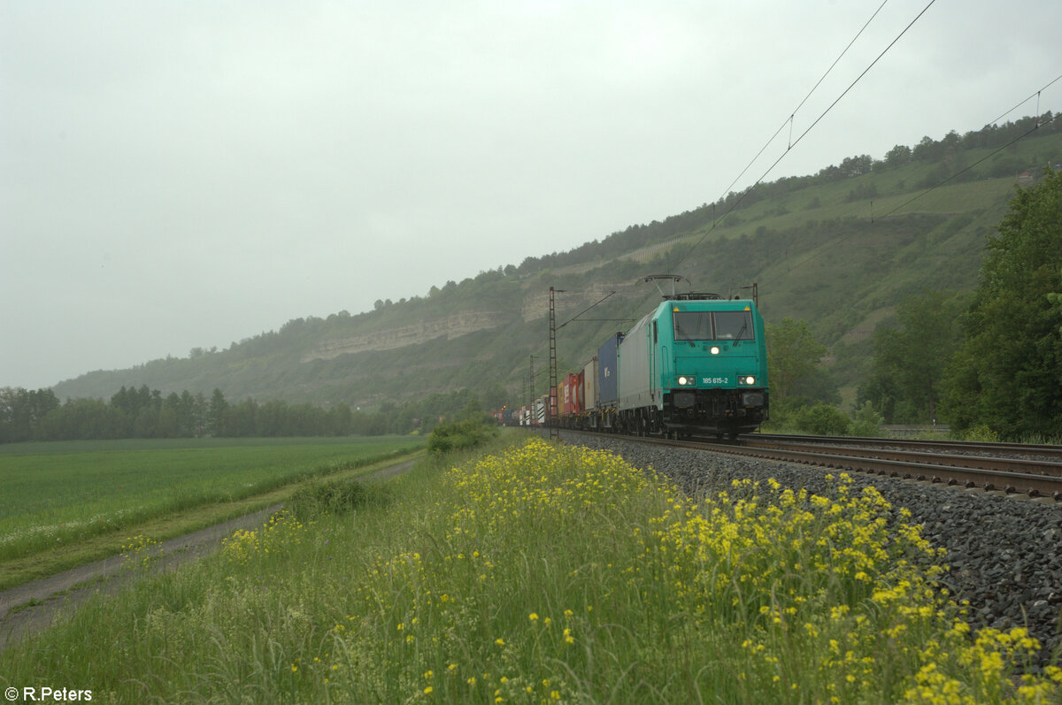 185 526-1 zieht mit einem Paneuropa/Terratrans Sattelauflieger Zug bei Himmelstadt gen Norden. 28.03.24