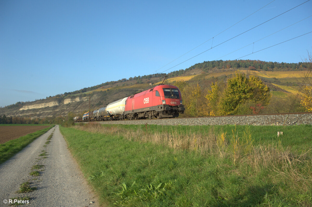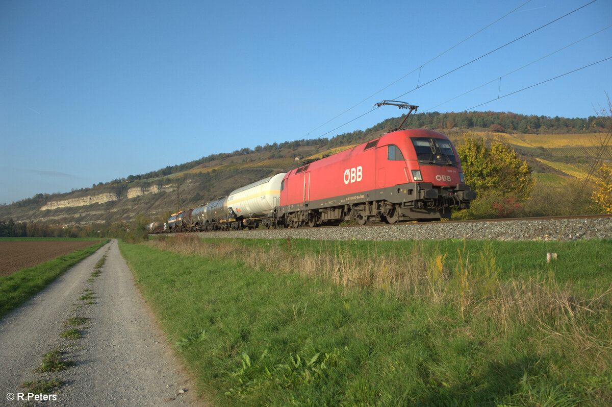 1016 013-5 zieht mit einem gemishten Güterzug in Richtung Passau bei Pölling. 07.04.24
