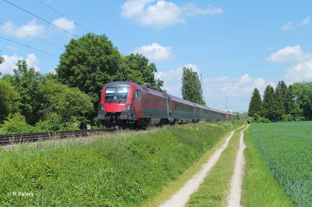 Nachschuss auf 1116 204 als RJ 67 München nach Budapest bei Freising. 08.06.13