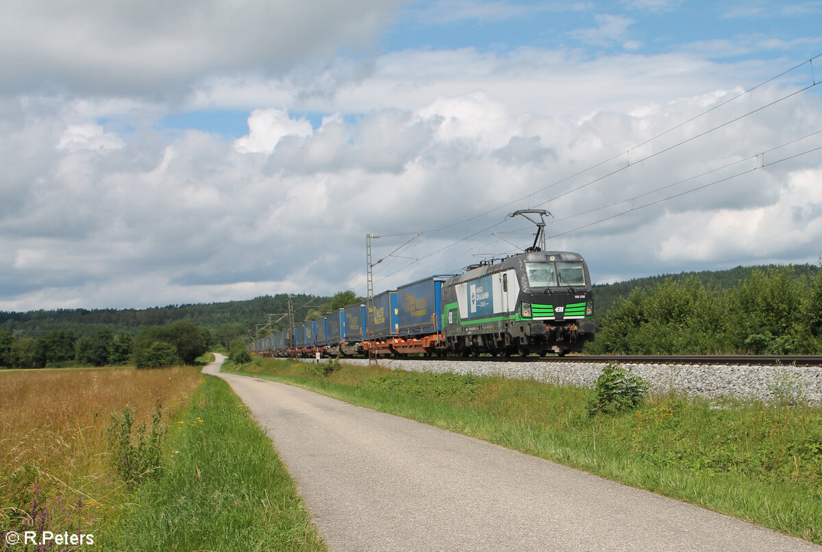 187 321-5 zieht mitz einem Gigawood leer Holzzug bei Pölling in Richtung Norden. 28.08.24