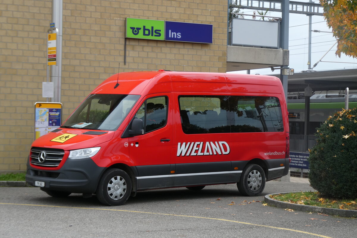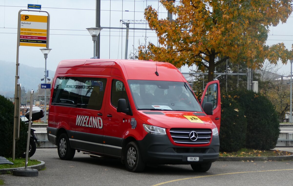 (282'039) - Wieland, Murten - Nr. 138/FR 62 - Mercedes am 1. November 2025 beim Bahnhof Ins