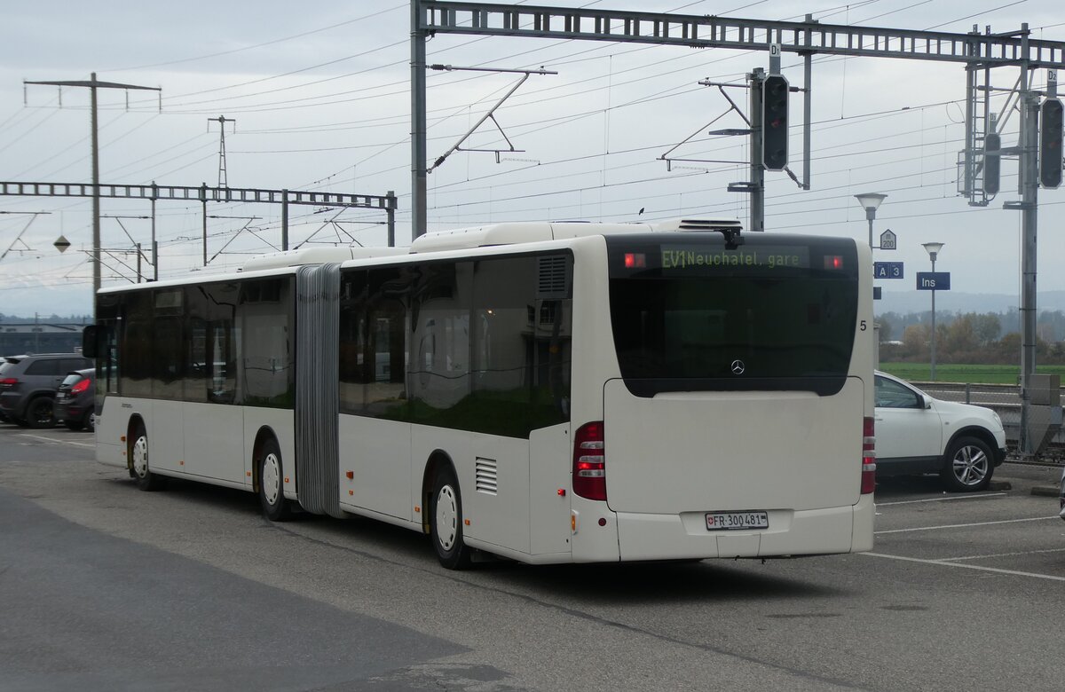 (282'046) - Intertours, Domdidier - Nr. 481/FR 300'481 - Mercedes (ex Nr. 211; ex STI Thun Nr. 135) am 1. November 2025 beim Bahnhof Ins